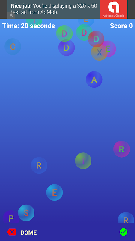 Touch bubbles to pop them. Pop bubbles to spell words. Spell words to score points. Score bonus points for longer words. The longer the word, the greater the bonus. Don't let your morning commute to school or work go to waste. Put your time on the bus or train to good use. Keep your mind sharp and have fun doing it. Want to have fun and relax? Try Free Play mode. No timers to mind, no words to memorize, just spell whatever word comes to mind and score. Do you need a warm-up challenge to get your brain ready for the work day ahead? Try Timed mode and keep trying to beat the clock. Spell a word to reset the timer, but as your score gets higher, the time you have to spell your next word gets shorter.