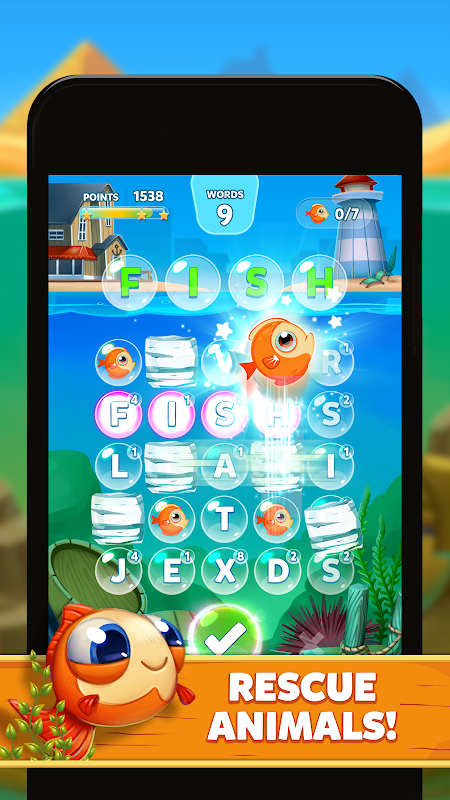 In this brain game your goal is to clean the ocean doing word search and word hunt. Become a word finder and a word genius with these brain challenges.