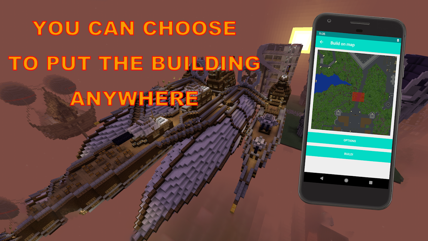 Builder for MCPE is very simple app with clear and intuitive interface. You are just choosing building and then it appears on your Minecraft PE map!