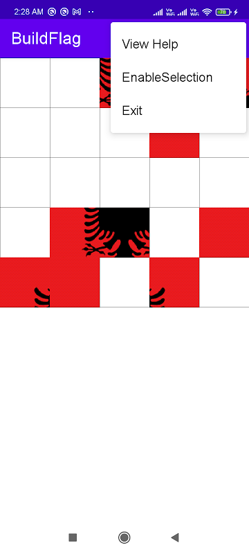 बिल्डफ्लैग एक पहेली खेल है जिसमें झंडे के टुकड़ों का उपयोग करके एक झंडा बनाया जाता है