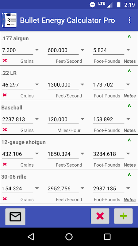 यह ऐप विभिन्न वेगों और द्रव्यमान मूल्यों पर एकाधिक बुलेट ऊर्जा की गणना और तुलना करने में आसान और त्वरित बनाता है।