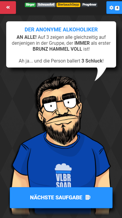 बम्सफ एक पीने का खेल है जिसमें विविध और नवीन कार्य हैं। क्विज़ प्रश्न, पैंटोमाइम, गार्गल अनुमान लगाने वाले गेम, बेवकूफी भरे शब्दों के साथ कॉल, क्विज़ और ऐसे कार्यों से युक्त मज़ेदार कार्य जिनमें आपको निश्चित रूप से स्वयं सक्रिय होना है! और बीच में आप चश्मा झपकाते हैं और साथ में टोस्ट की आवाज निकालते हैं!