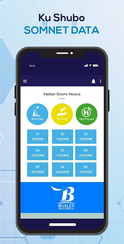 Busley Data wuxuu ku fududeynaa inaad si fudud ugu shubato Internet Data
