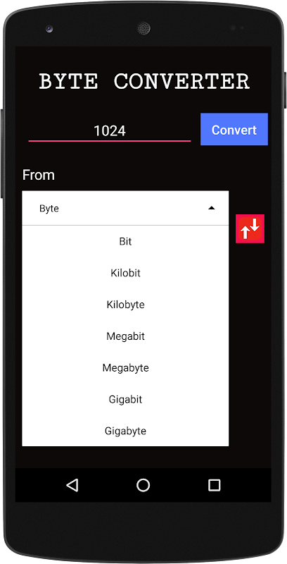 Byte Converter app is convert from bits,bytes,kilobit, kilobytes,megabit,megabytes,gigabit,
