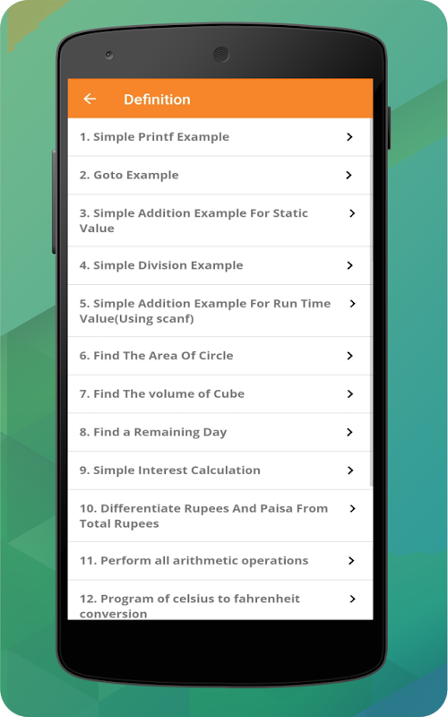 सी उदाहरण एप्लिकेशन सी भाषा के कार्यक्रमों प्रदान करते हैं. कई विषयों इस आवेदन में शामिल किया जाता है. सभी छात्रों और शुरुआत के उनके अध्ययन के लिए इस अनुप्रयोग का उपयोग कर रहे हैं. मैं आपको यह इच्छा उपयोगी उम्मीद है.