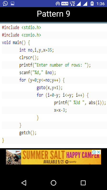 This app is full of pattern and other C programs. In addition to this, there is a lot of study stuff related to C programming as well.