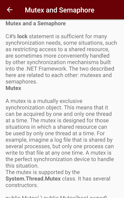 मल्टीथ्रेडिंग - एक से अधिक कार्य हम समवर्ती रूप से निष्पादित कर सकते हैं, सिंक्रनाइज़ेशन, पुनरावृत्ति कॉम्यूटेशन, म्यूटेक्स और सेमाफोर शामिल हैं।
