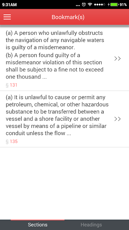 कैलिफोर्निया बंदरगाहों और नेविगेशन संहिता एप्लिकेशन को अपने हाथ की हथेली में कानून और कोड प्रदान करता है।