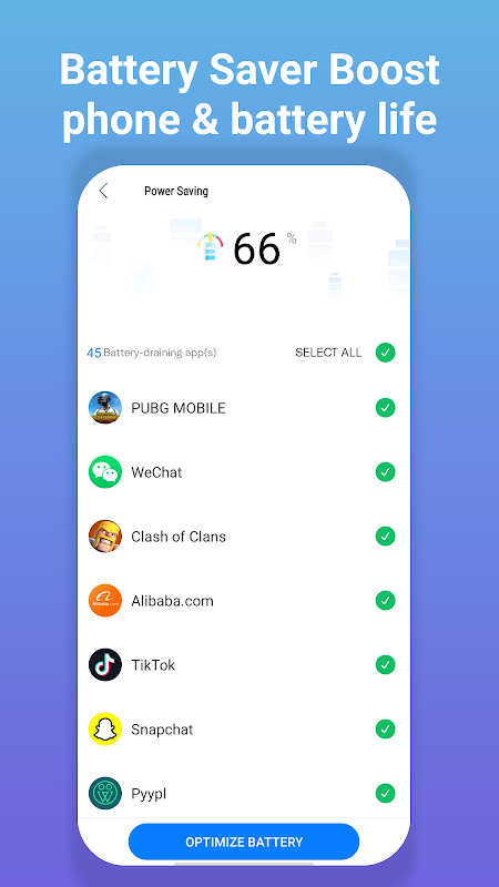 उपयोग। यह सुपर पावर क्लीनर बैटरी खत्म होने और बैटरी को बूस्ट करने से रोकने के लिए ऐप्स को हाइबरनेट कर सकता है