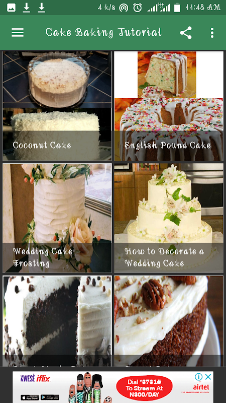 निम्नलिखित इस ऐप्लिकेशन में उपलब्ध केक के विभिन्न प्रकार हैं