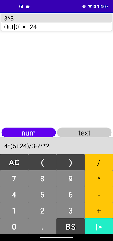 To use repl on the Phone, the UI is similar to a calculator. You can do simple calculations by touch. If you want to do more complex calculations, you can switch to plain text input mode to write a python expression.