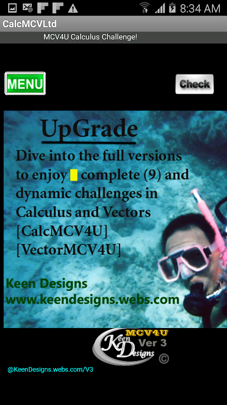Limited edition of CalcMCV4U - Calculus challenges. This introductory app is an excellent tool to explore your knowledge in Calculus theory, in particular at Grade 12 level (MCV4U). Fixed parameters for 5 sampled levels out of the 9 Problems in the full version are provided. These mind teasing challenges are perfect for refining your vectors skills whenever and wherever.