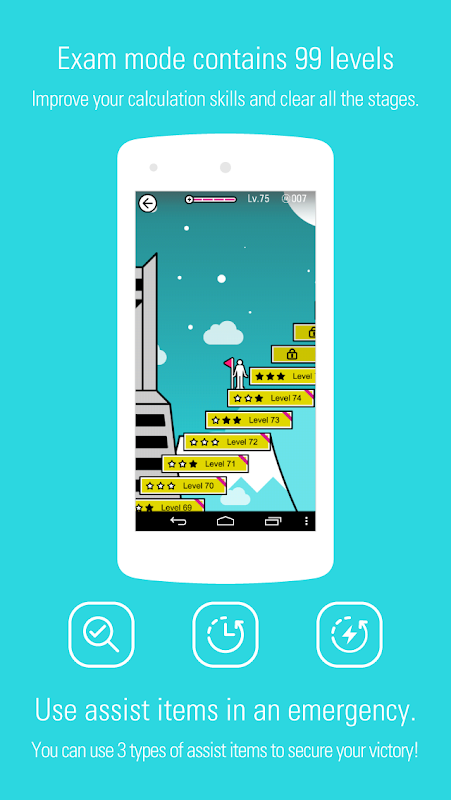 समय के साथ प्रतिस्पर्धा करें या जब आप कठिन समय से गुज़र रहे हों तो सहायक वस्तुओं का उपयोग करें। यह आपको न केवल गणना प्रशिक्षण प्रदान करता है, बल्कि चुनौतीपूर्ण गेमप्ले भी प्रदान करता है!