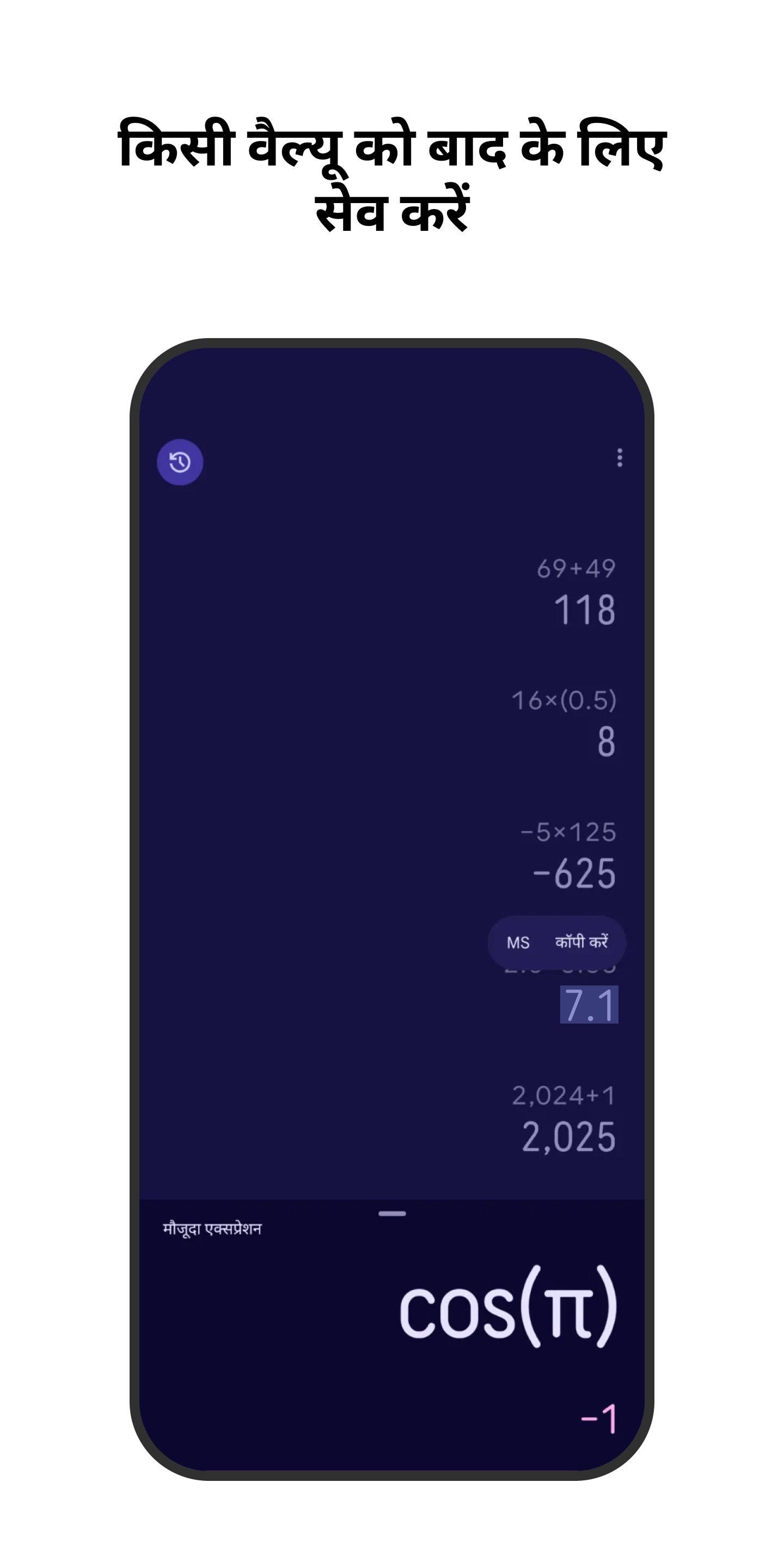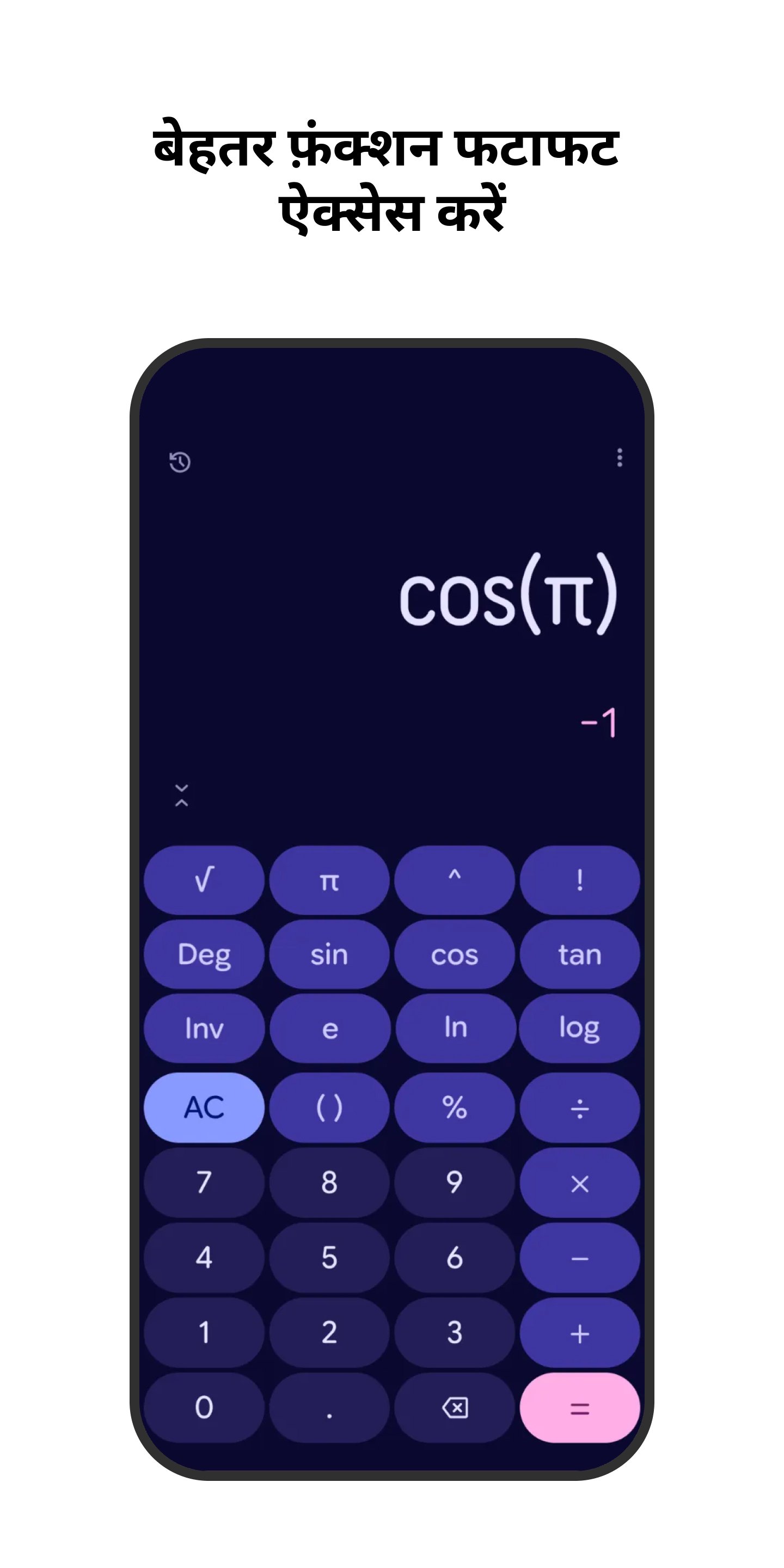 • कोणमितीय, लॉगरिद्मिक, और घात (किसी संख्या या मान को उसी संख्या या मान से गुणा करना) जैसे वैज्ञानिक काम करें