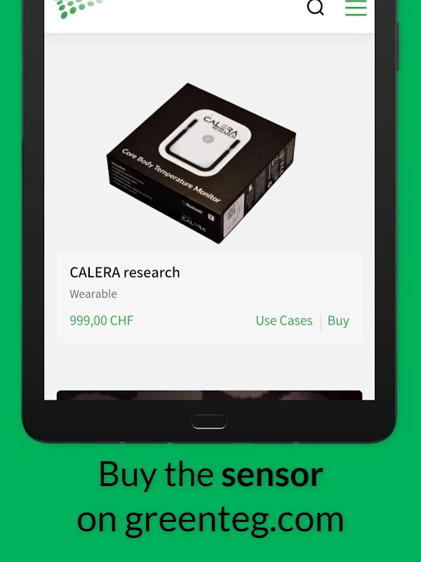 महत्वपूर्ण: कैलेरा ऐप को कैलेरा डिवाइस के साथ काम करने के लिए डिज़ाइन किया गया है, जिसे https://shop.greenteg.com/core-body-temperature/caleraresearch पर ऑर्डर किया जा सकता है। यह ऐप CORE सेंसर के साथ उपयोग के लिए डिज़ाइन नहीं किया गया है।