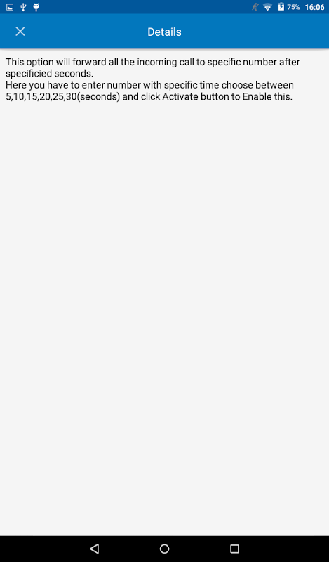 You can choose which we have given like for forwarding unconditionally, unanswered or if busy with time, after that time call will disconnect and divert to your target number. You can use this app in emergency like battery low or in roaming mode. Don't worry about that just download call forwarding app for Forwarding call to your desired number or voicemail box.