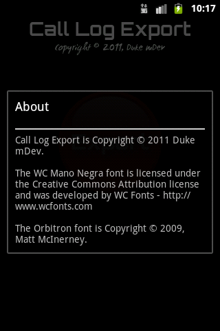 Email your call log in .csv format. Exports the device's call log to a .csv file and passes it to the mail client for easy distribution.
