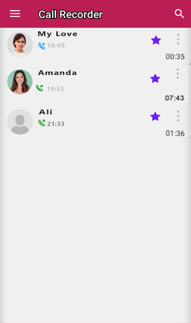 फ़ोन कॉल रिकॉर्डिंग ऐप आपको साझा करने, चलाने, हटाने, कॉल रिकॉर्डिंग का नाम बदलने, एकाधिक ऑडियो प्रारूप, पसंदीदा बढ़ाने, वॉयस रिकॉर्डर इत्यादि जैसी सुविधाओं के साथ स्मार्ट तरीके से रिकॉर्डिंग फ़ाइलों को प्रबंधित करने की अनुमति देता है। अब महत्वपूर्ण कॉल रिकॉर्डिंग खोने के बारे में चिंता न करें।