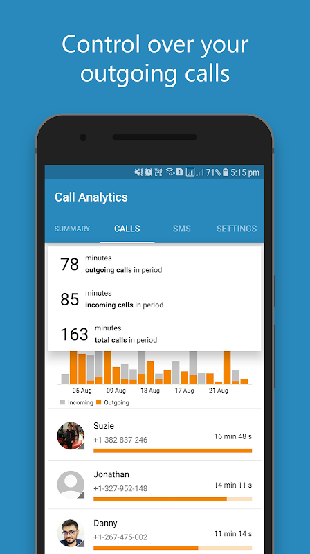 Call Analytics is a mobile manager app that helps you to track call log and SMS log on your mobile more efficiently then in-build call log.