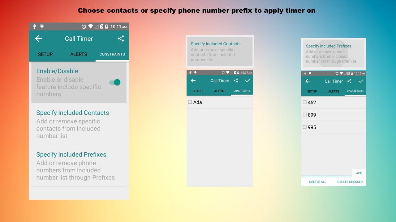 ✔ If you only want to apply or exclude timer on specific contacts or contacts starting with specific prefix then use the Contacts settings under. CONSTRAINTS tab.