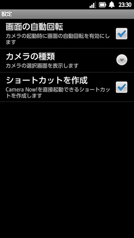 And there are options such as enable automatic rotation of screen and select camera to launch (still or video).