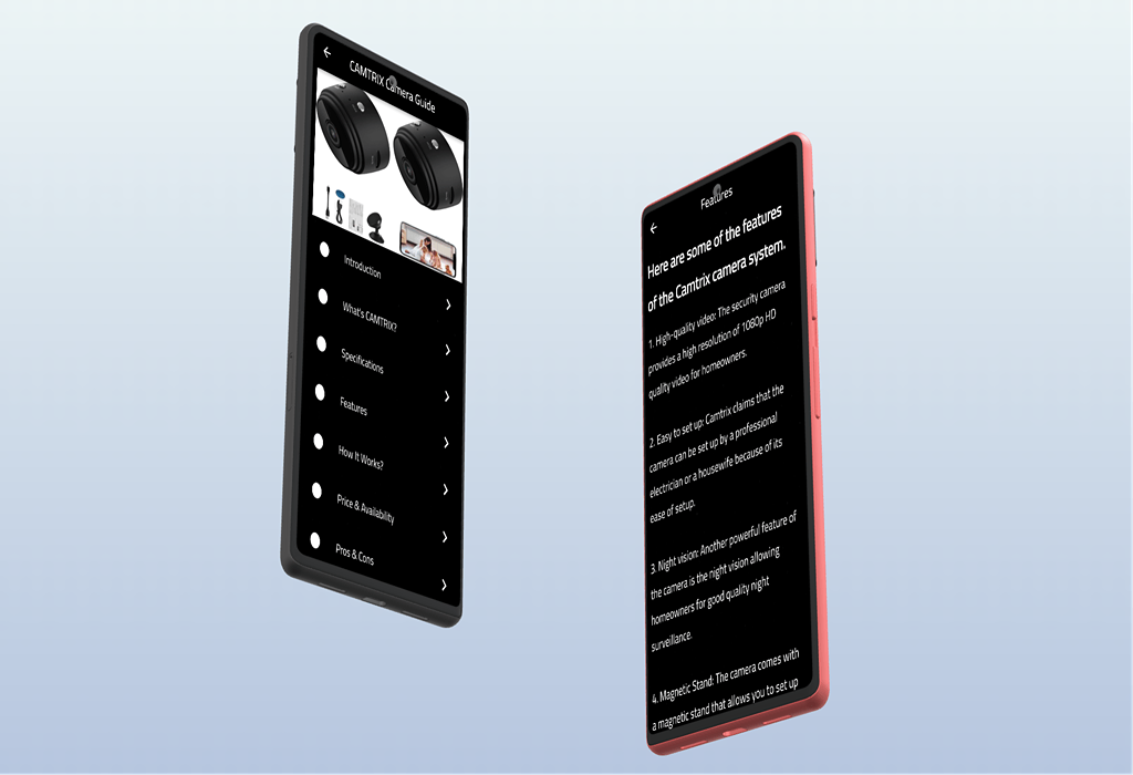 CAMTRIX सुरक्षा कैमरा गाइड ऐप की सामग्री:-