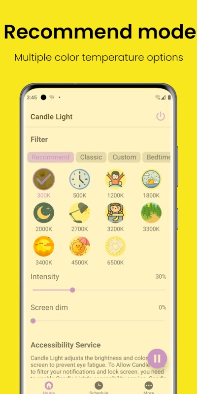 आपके नोटिफिकेशन और लॉक स्क्रीन को फ़िल्टर करने के लिए ऐप कैंडललाइट एक्सेसिबिलिटी सर्विस को सक्षम करने के लिए कह सकता है। ऐप इस सेवा का उपयोग केवल आपकी स्क्रीन को बेहतर फ़िल्टर करने के लिए करता है और कोई भी व्यक्तिगत जानकारी एकत्र नहीं करता है। आप किसी भी समय अधिकृत या रद्द कर सकते हैं।