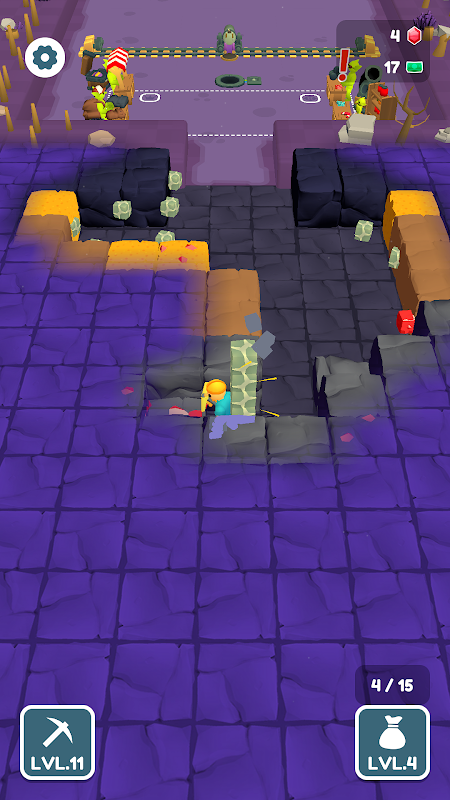 आप हीरो हैं जो कालकोठरी की खोज करते हैं। अपनी तोप को बेहतर बनाने और खजाने तक पहुँचने के लिए, आपको राक्षसों से पीछे हटना होगा और एक कुल्हाड़ी से ब्लॉक खोदना होगा। आप जितने ज़्यादा राक्षसों को मारेंगे, आपकी कुल्हाड़ी का स्तर उतना ही ऊँचा होगा। अपनी कुल्हाड़ी को मज़बूत करके, आप बेहतर तरीके से खुदाई कर पाएँगे, जिससे आप कालकोठरी के गहरे और गहरे स्तरों का पता लगा पाएँगे और तोप को बेहतर बनाने के लिए ज़्यादा से ज़्यादा कीमती खजाने ढूँढ पाएँगे। अपनी तोप को अपग्रेड करने से आप ज़्यादा मुश्किल राक्षसों से निपट पाएँगे और कालकोठरी के अंत तक पहुँच पाएँगे!