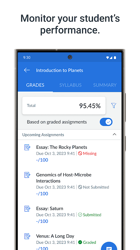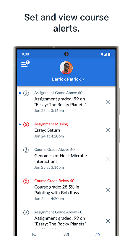 परंपरागत रूप से, उनके छात्रों की प्रगति के बारे में जानकारी मांगी माता-पिता काम के योजनाकारों, ईमेल प्रशिक्षकों के माध्यम से झारना, या रिपोर्ट कार्ड के लिए इंतजार करना पड़ा। लेकिन इंतजार खत्म हो गया है! कैनवास जनक एक नज़र में अपने बच्चे की शिक्षा में दृश्यता प्रदान करने के लिए बनाया गया है। कैनवास जनक माता पिता के लिए अनुमति देता है: