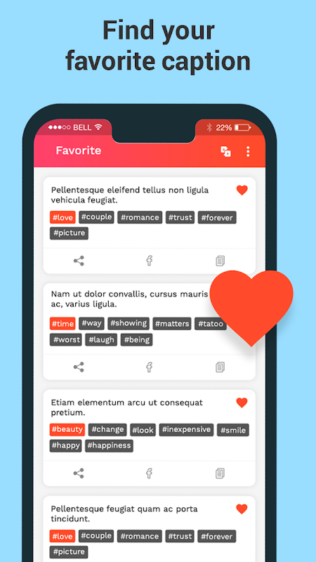 This is the app where you can find suitable and good captions for your Facebook that you can post with your photos.