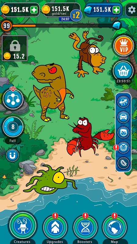 अपने आप को एक आनुवंशिकीविद् की भूमिका में आज़माएं! एक नए विकास चरण में उठने के लिए डीएनए को मिलाएं। पानी के नीचे की दुनिया से शुरू करें, पहला आदमी बनाएं और उसे पाषाण युग से दूर के भविष्य तक ले जाएं।