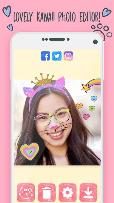 💗 तस्वीरों को स्टिकर जोड़ें और अपने आकार को समायोजित करें ताकि आपके चेहरे पर पूरी तरह फिट हो सके