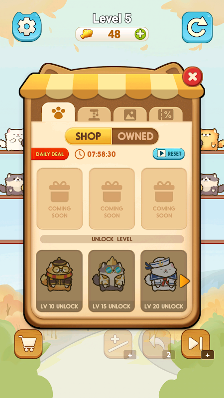 प्रो टिप: अगर आप फँस गए हैं, तो खाली टहनियों को "अस्थायी जगह" के रूप में इस्तेमाल करें—एक पल के लिए किसी भी बिल्ली को वहाँ ले जाएँ ताकि आप बाकी बिल्लियों को अलग कर सकें, फिर बाद में उन्हें समूह में रखने के लिए वापस आएँ. साथ ही, सबसे पहले उस रंग से शुरुआत करें जो हर जगह दिखाई देता है—सबसे आम बिल्लियों को पहले समूह में रखने से जगह जल्दी खाली हो जाती है!