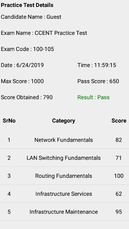This application is a practice exam simulator which provides 250+ questions for learning, practice and test your preparation for CCENT (Cisco Certified Entry Networking Technician exam). Exam Simulator covers all objectives included in syllabus of 100-105 (ICND1) certification exam like Network Fundamentals,LAN Switching Fundamentals, Routing Fundamentals, Infrastructure Services and Infrastructure Maintenance.