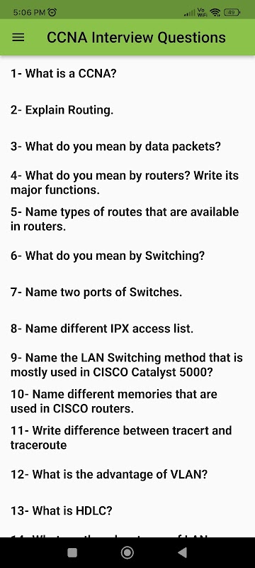 CCNA Interview Questions: For those specifically interested in CCNA, our app includes a dedicated section with over 100+ questions focused on CCNA concepts. Deepen your knowledge and boost your confidence in CCNA interview scenarios.