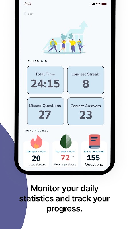 - Personalized Study Plans: Set your daily goals, question difficulties, and performance benchmarks for customized preparation.