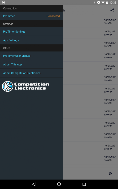 इस ऐप को कॉम्पिटिशन इलेक्ट्रॉनिक्स ProTimerBT शॉट टाइमर (मॉडल CEI-4720) के साथ उपयोग करने के लिए डिज़ाइन किया गया है। अब आप अपने अभ्यास सत्र की जानकारी को अपने फोन या टैबलेट पर सूचीबद्ध कर सकते हैं!
