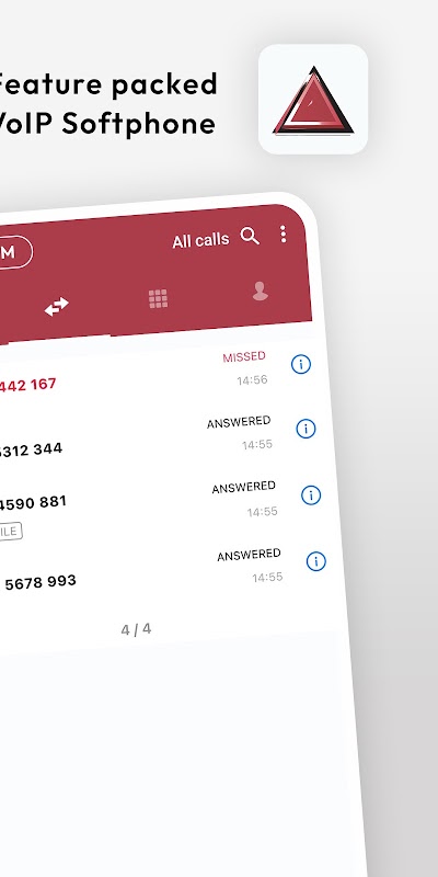 उन्नत सॉफ्टफ़ोन के साथ उन्नत सॉफ्टफ़ोन प्लेटफ़ॉर्म पर सॉफ्टफ़ोन ऐप। एक एसआईपी सॉफ्टफ़ोन ऐप जो पुश नोटिफिकेशन, एचडी वॉयस और वीडियो और बहुत कुछ का समर्थन करता है।