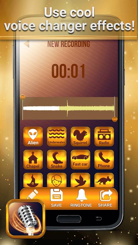 प्रभाव के साथ अपनी आवाज बदल में भाषण संपादन के लिए उपकरण होना चाहिए सर्वश्रेष्ठ डिजिटल वॉयस रिकॉर्डर और ध्वनिबोर्ड एप्लिकेशन को निःशुल्क डाउनलोड करें और जिस तरह से आप अभी बोलते हैं उसे बदलना शुरू करें! भाषण को संशोधित करें, जिस तरह से आप इस ध्वनि परिवर्तक और रिंगटोन निर्माता के साथ बात करते हैं और तुरंत मुखर परिवर्तन का आनंद लें। पूरे दिन लंबे समय तक अजीब आवाजों को खेलने में बहुत मज़ा आता है और अपने दोस्तों और परिवार के साथ कभी मज़ाक कॉल और मजेदार मजाक बनाएं।