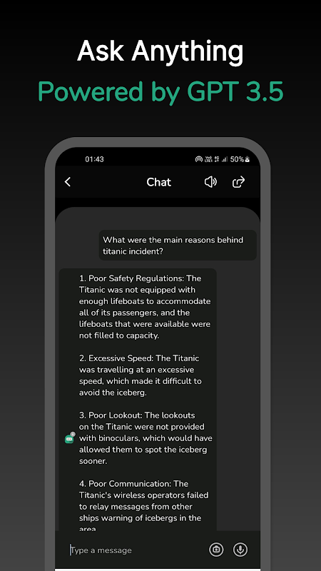 Ask AI anything with AI Chatbot like ChatGPT. Enjoy AI Chat App like Chat GPT