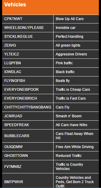 Keep an eye on this GTAForums thread for all the latest cheats.