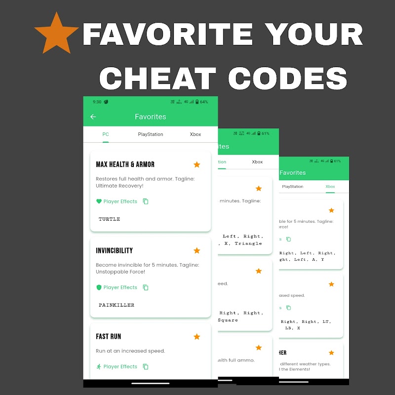- पसंदीदा: त्वरित पहुँच के लिए अपने सबसे अधिक इस्तेमाल किए जाने वाले चीट कोड सेव करें।