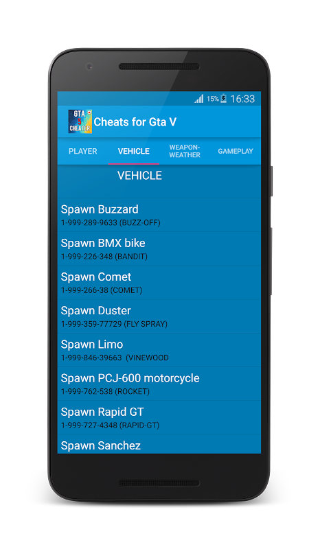 Also, every cheats categorized by character,gta 5 car,weather,weapon and gameplay.