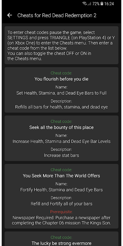 Cheats for Red Dead Redemption 1 & 2 contain all cheat codes for Red Dead Redemption 1 and Red Dead Redemption 2 game for every console and platform.