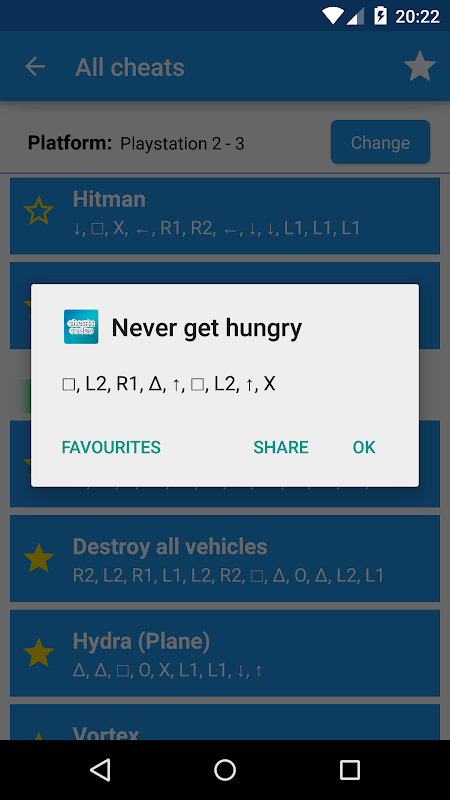 In this app you will find all CHEATS and codes for GTA San Andreas for Playstation, Xbox and PC & Mac. You will also find one button to save your cheats in favourite, and later you will be able to see it very fast.