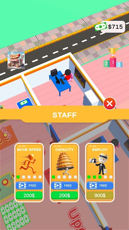 अपने चीज़केक साम्राज्य का निर्माण करें: अपने व्यवसाय का विस्तार करें, नए स्टोर खोलें, और अपने मीठे सपनों को साकार होते देखें! प्रत्येक संतुष्ट ग्राहक आपको सर्वश्रेष्ठ चीज़केक टाइकून बनने के करीब लाता है। (खुश ग्राहकों के साथ एक हलचल भरी चीज़केक दुकान की छवि)