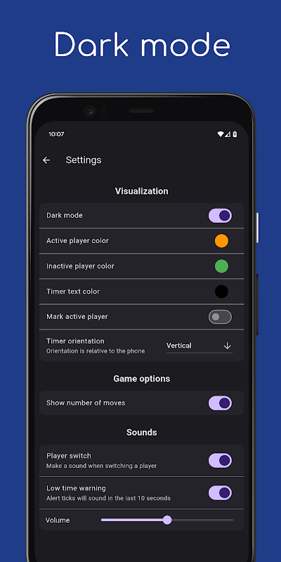 ऐप पूरी तरह से अनुकूलन योग्य है, जो आपको रंग, टाइमर ओरिएंटेशन, आइकन आकार, लेबल दृश्यता और बहुत कुछ समायोजित करने की अनुमति देता है। हमारा सहज ज्ञान युक्त इंटरफ़ेस यह सुनिश्चित करता है कि आप अपना समय अपनी रणनीतियों पर ध्यान केंद्रित करने में व्यतीत करें, न कि सेटिंग्स में उलझने में। साथ ही, हमारा क्लॉक टाइमर बैटरी के अनुकूल है और अपने डार्क मोड के कारण आंखों के लिए आसान है।