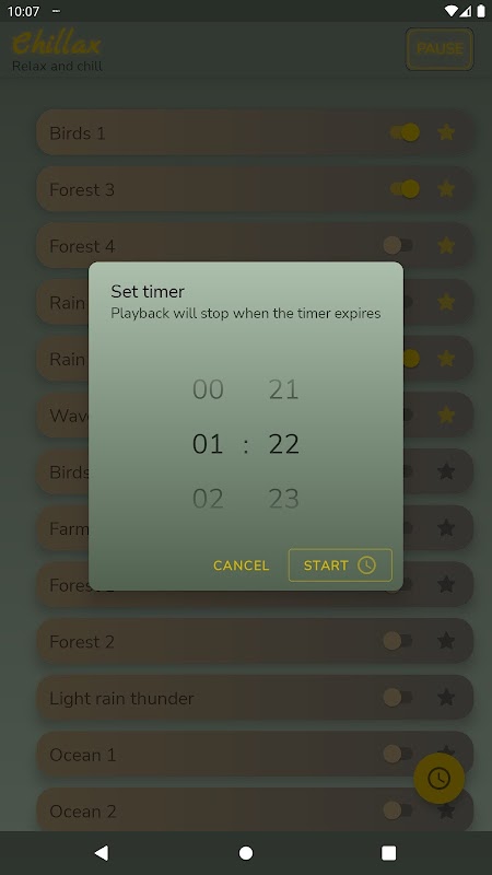 एक टाइमर सेट करें और समय बीत जाने के बाद ध्वनि प्लेबैक अपने आप समाप्त हो जाएगा।