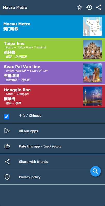 मकाऊ मेट्रो, चीन के लिए नवीनतम ऑफ़लाइन पारगमन मानचित्र