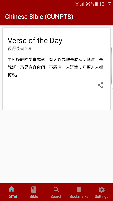 An easy to use CUNPTS Holy Bible in Traditional Chinese app. The Bible is complete with both New and Old Testaments.